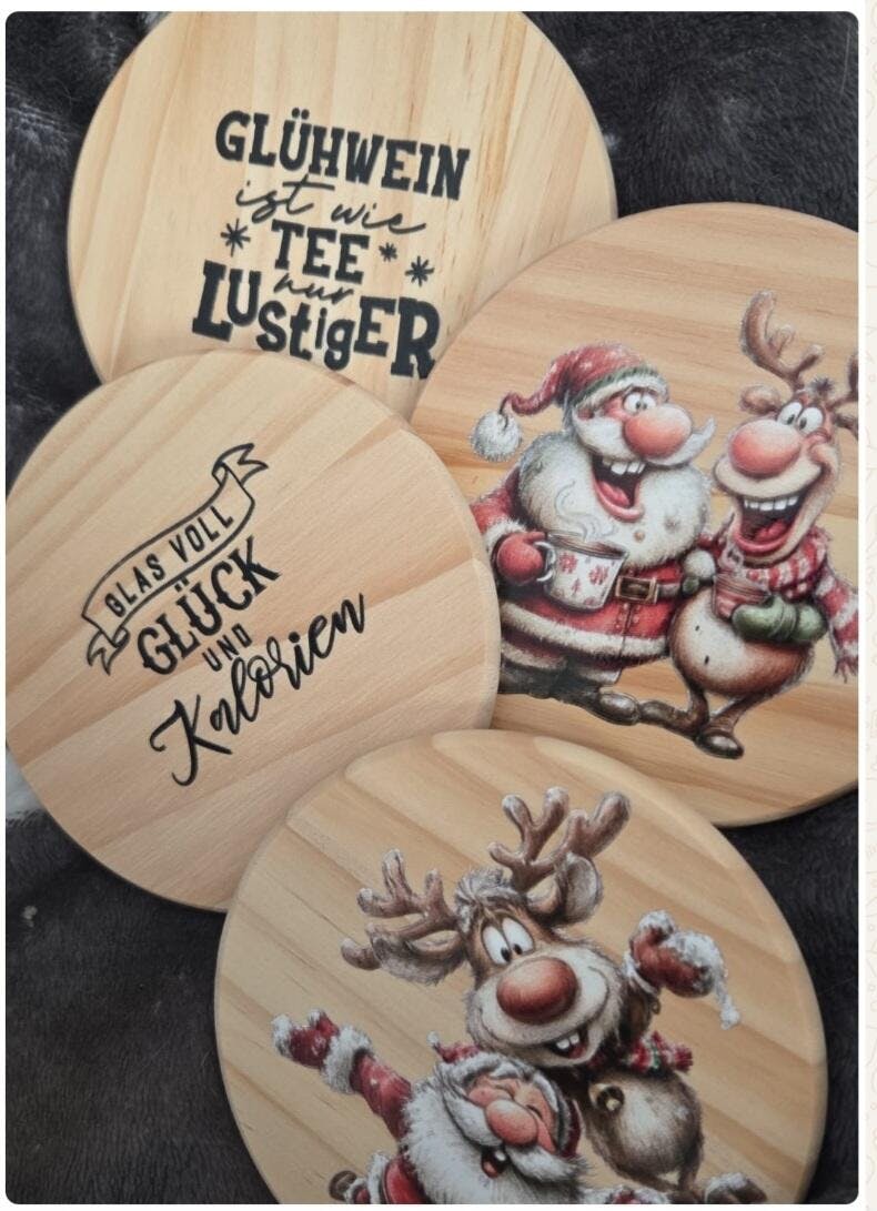 A4 Bogen Rub ON Sticker Weihnachtsmann Elch Bäckerei, Plätzchen Sprüche, randlose Rubons