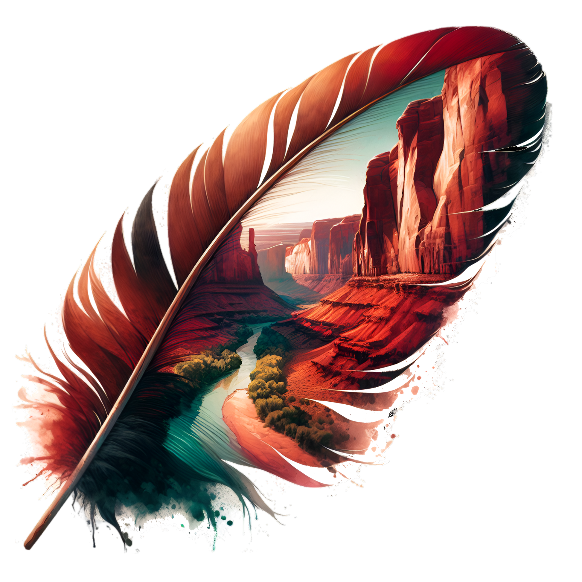 Bügelbild Rote Berge Feder