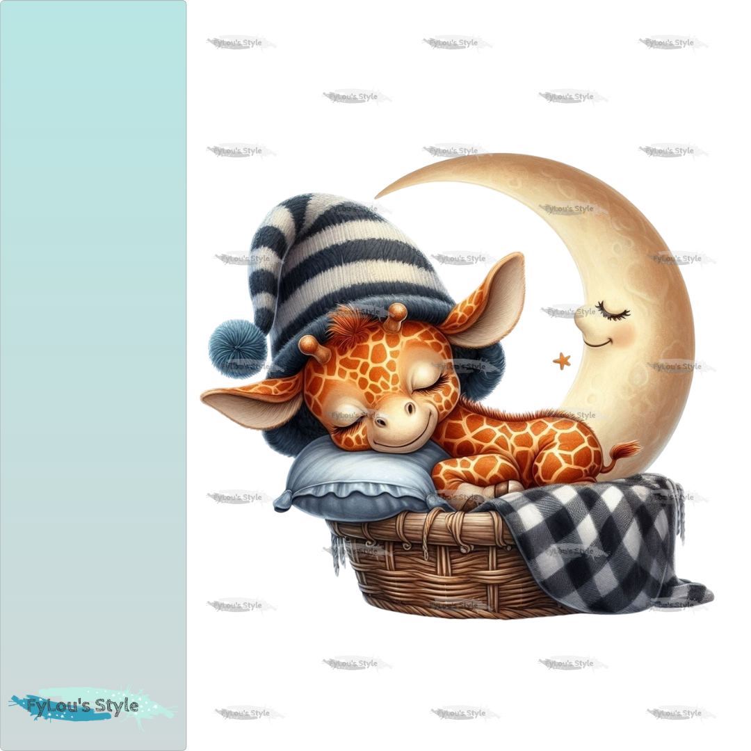 Bügelbild Schlafende Giraffe im Korb