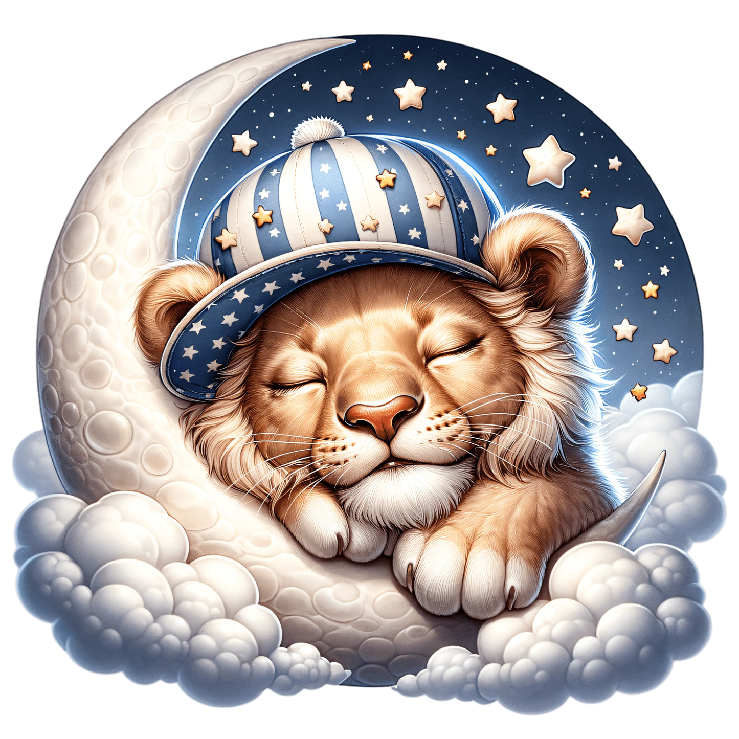 Bügelbild schlafender Löwe auf dem Mond