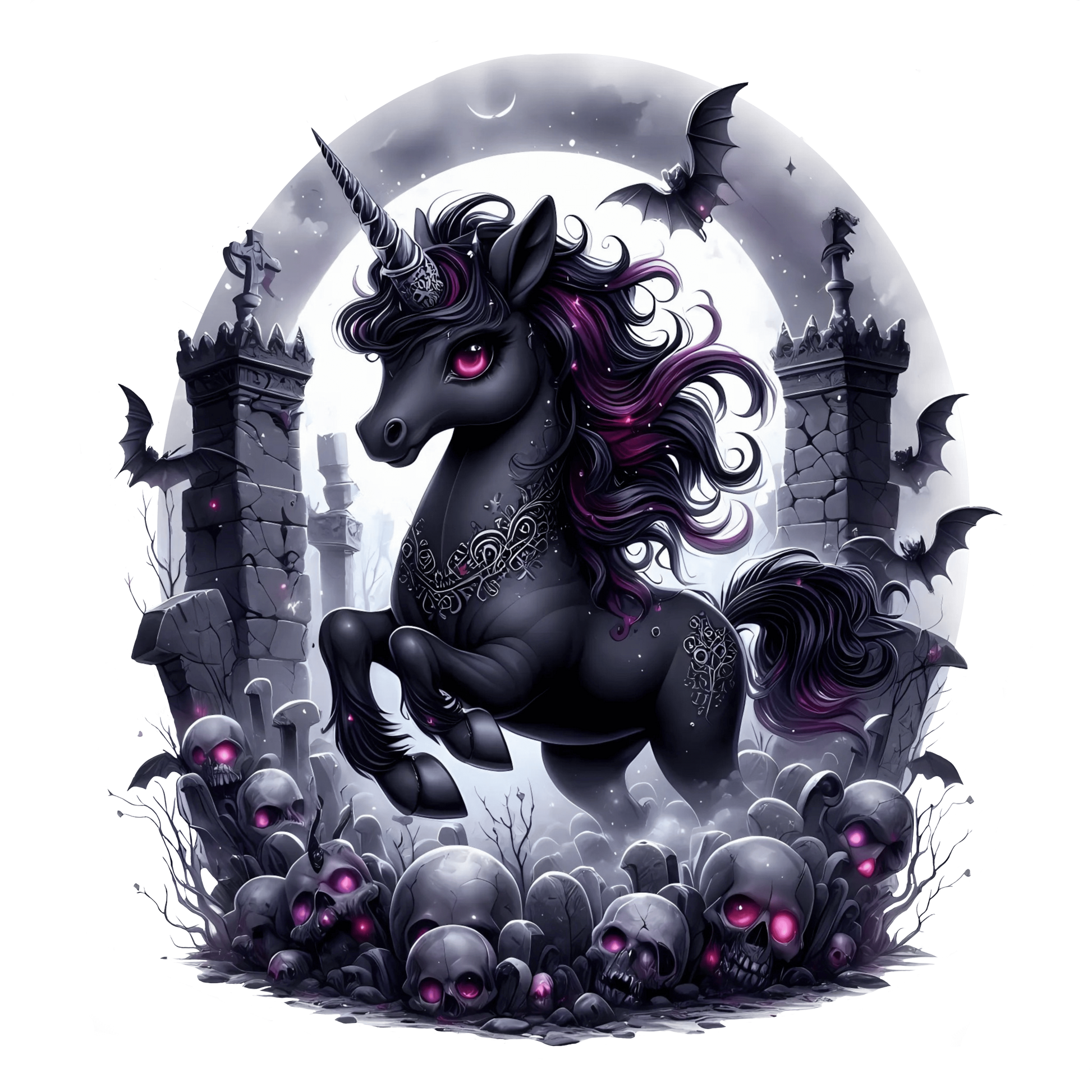 Bügelbild Schwarzes Halloween Friedhof Einhorn #6