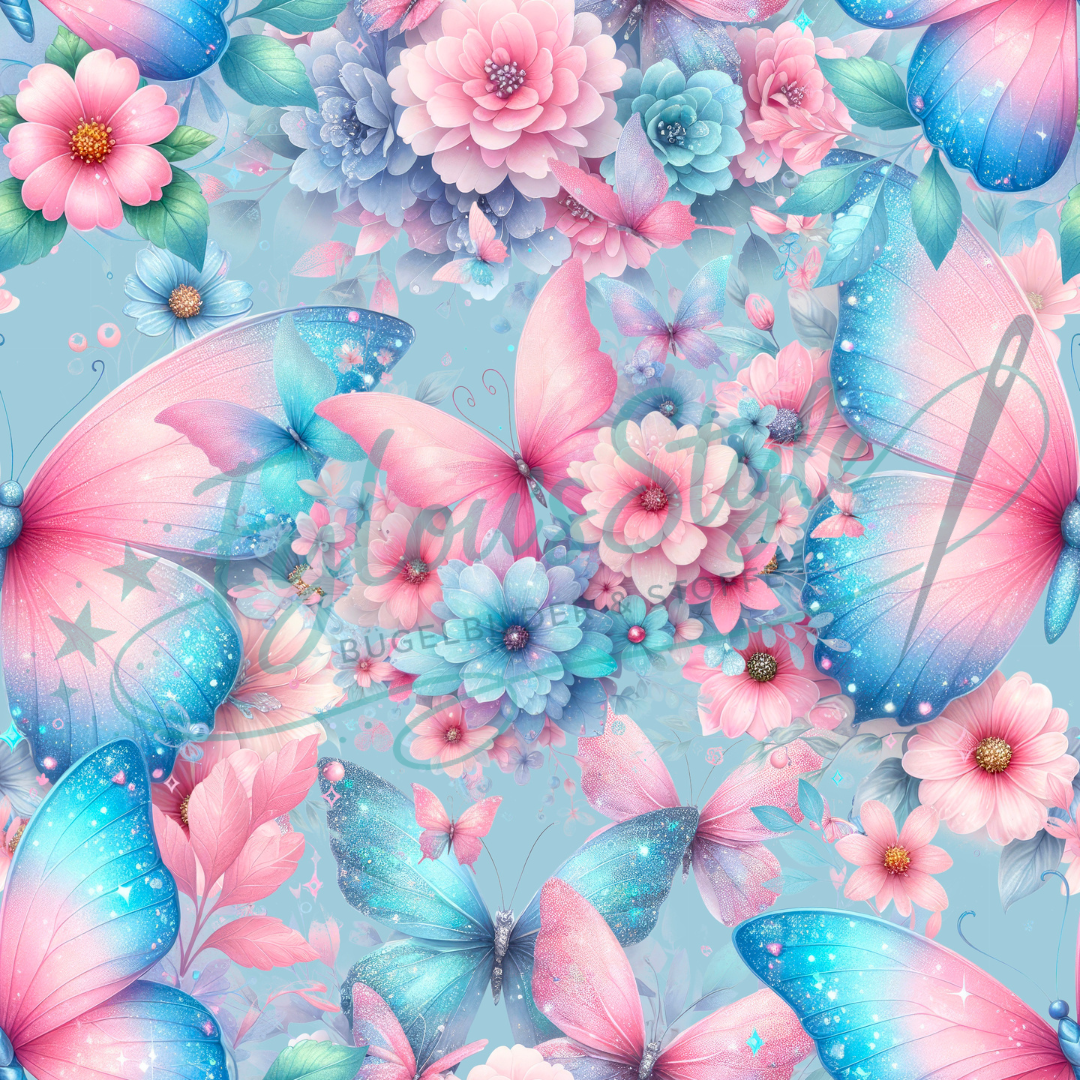 Vorbestellung Bio Jersey "Rosa Schmetterlinge mit Blumen" Überbreite