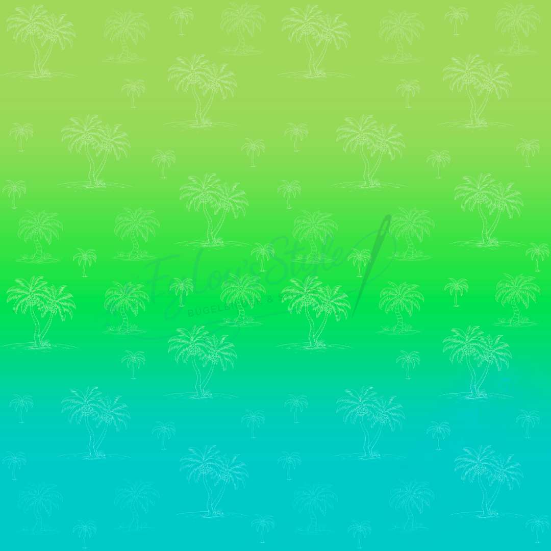 Inspiriert von erfahrenen Sonnenuntergängen vereint diese Serie sanfte Farbverläufe mit einem feinen Palmenmuster. Der hochwertige Bio-Jersey wird im Reaktivdruck veredelt und überzeugt durch brillante, langlebige Farben sowie ein angenehm weiches Tragegefühl.